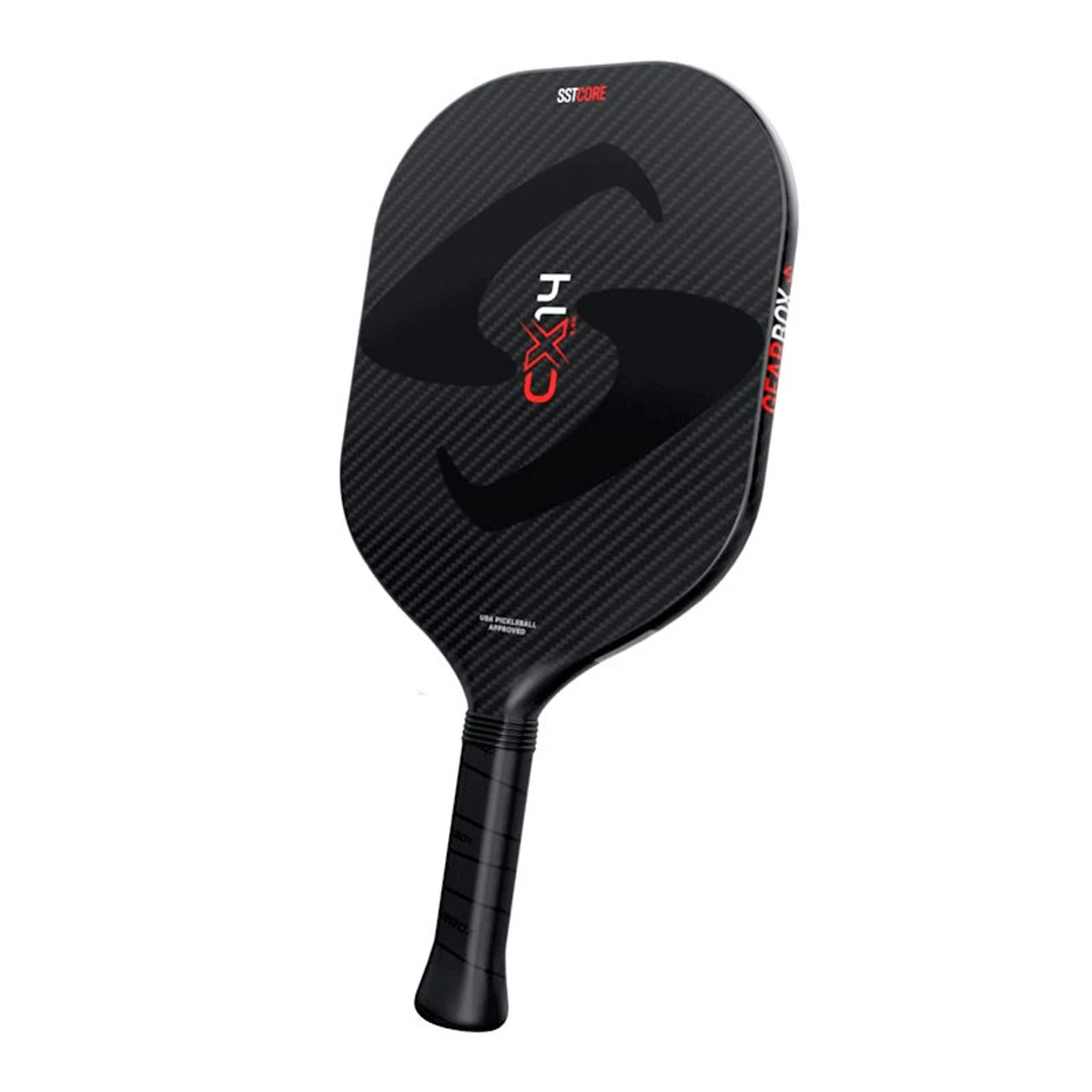 The CX14 Hyper shape utilizes our thicker 14mm stability profile. You’ll notice that this paddle has a longer handle combined with a shorter, Quad shaped face. This combination offers a unique playstyle, making it quick and maneuverable despite being 14mm thick. It offers the agility of an 11mm paddle with the stability and feel of a thick core paddle. The feel is surprisingly fast in your hands. The longer handle easily accommodates a two-handed shot. It is excellent for players who enjoy the feel of a thicker honeycomb core paddle but want the durability and performance of Gearbox’s #1 SST ribbed core technology.